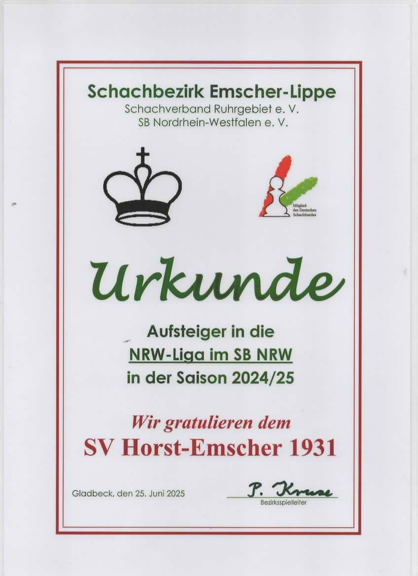 Br. | Rangnr. | SK Turm Kleve 1 | - | Rangnr. | SV Horst-Emscher 1 | 1 : 7 |